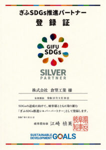2025.09.11 お知らせ ぎふSDGs推進シルバーパートナーに登録されました 株式会社倉望工業は、岐阜県とともに取り組む「ぎふSDGs推進シルバーパートナー」として登録されました。 「ぎふSDGs推進パートナー制度」とは、SDGsの達成に寄与する事業者とその取組み内容等を「見える化」し、広く情報発信をすることで、事業者の更なる取組みを促進するとともに、SDGsに取組む事業者の裾野を広げることを目的とする制度です。